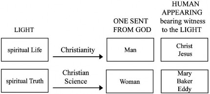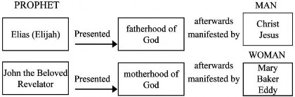 Irving C. Tomlinson, CSB, lived in Mrs. Eddy’s home: “…Mary Baker Eddy was thoroughly cognizant of her God-ordained appointment.” (12 Years p.215) “Jesus manifested the ‘first coming’ of the Christ to mankind, and Mary Baker Eddy’s discovery of Christian Science (the Comforter) has completely fulfilled the Biblical prophecy of the second coming’… Just as Jesus in the ‘first coming’ revealed the fatherhood of God, so Mrs. Eddy in the ‘second coming’ of the Christ revealed the motherhood of God.” (12 Years p.214) “This primal cause, as clearly indicated, includes fatherhood and motherhood, the masculine and feminine states of consciousness which are typified by the two witnesses, Christ and Christian Science, Christ being manifested through the manhood of Jesus and Christian Science through the womanhood of Mary Baker Eddy. It is significant that according to Hebrew law at least two witnesses were required to establish a fact.” (12 Years p.216)